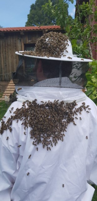Natürlich halten wir Schutzkleidung (Jacke mit Hut und Schleier, Handschuhe) für dich bereit